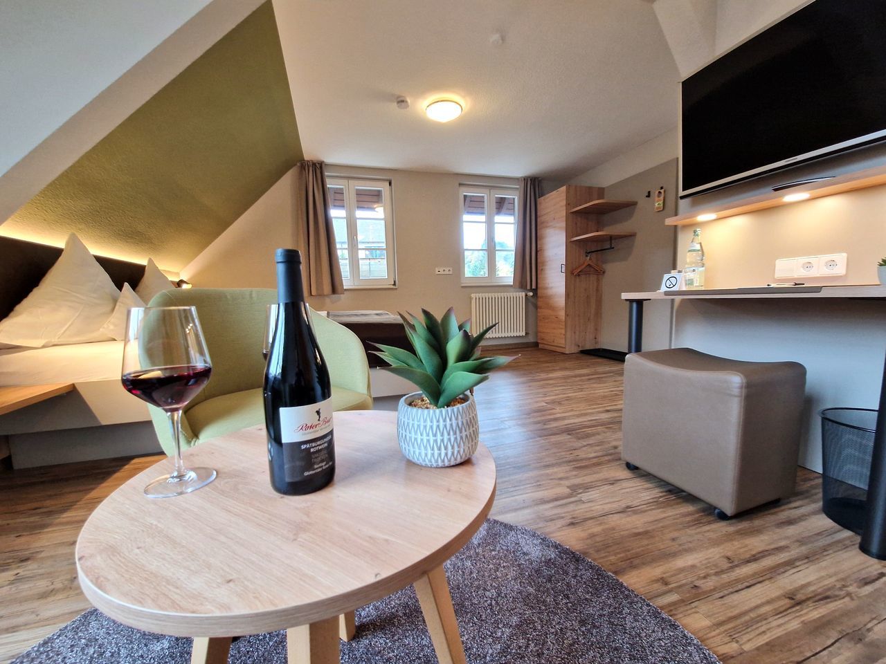| GENUSS-PAKET • täglich Feines 4-Gänge-Regionalmenü • Begrüßungsweinfläschle und Flasche Wasserauf dem Zimmer • Tägliches Frühstücksbuffet • KONUS-Gästekarte für den ÖPNV • Kostenfreies WLAN im gesamten Hotel • Parkplatz vor dem Hotel | 54,90 € pro Person und Nacht |